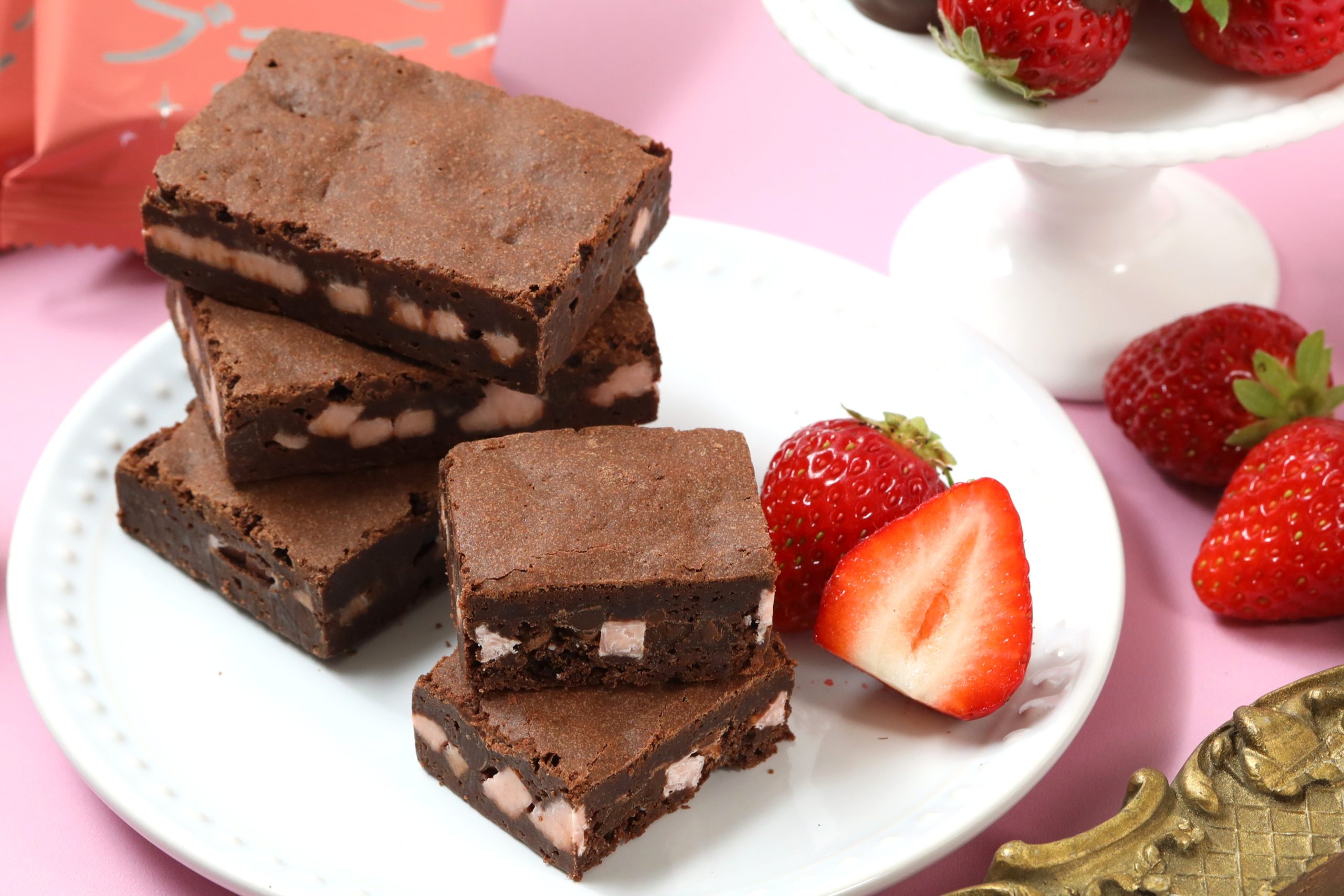 オリジナルチョコを使ったブラウニー生地に、イチゴ風味のチョコチップをサンドしました。 甘酸っぱいイチゴとチョコが相性抜群なブラウニーです。